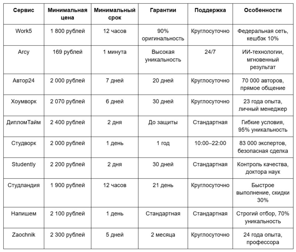 Мы проанализировали десятки платформ и отобрали лучшие по соотношению цены, качества и скорости работы. В рейтинге учитывались отзывы студентов, наличие гарантий и профессионализм экспертов.