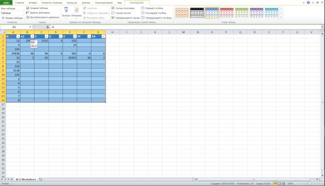 Обратите внимание на то, что теперь содержимое отображается как таблица. Можете управлять ею, добавляя различные визуальные элементы, условное форматирование или расширяя ее до нужных значений. По таблице можно удобно строить графики и другие сводные таблицы, что наверняка пригодится во время работы с Microsoft Excel.