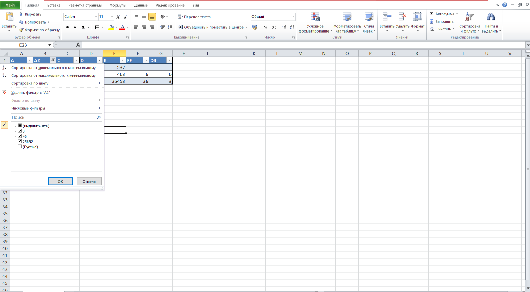 5. Уберите галочку с пункта «Пустые». После этого становится видно, что пустые значения скрыты. Таблица немного изменила свой вид.