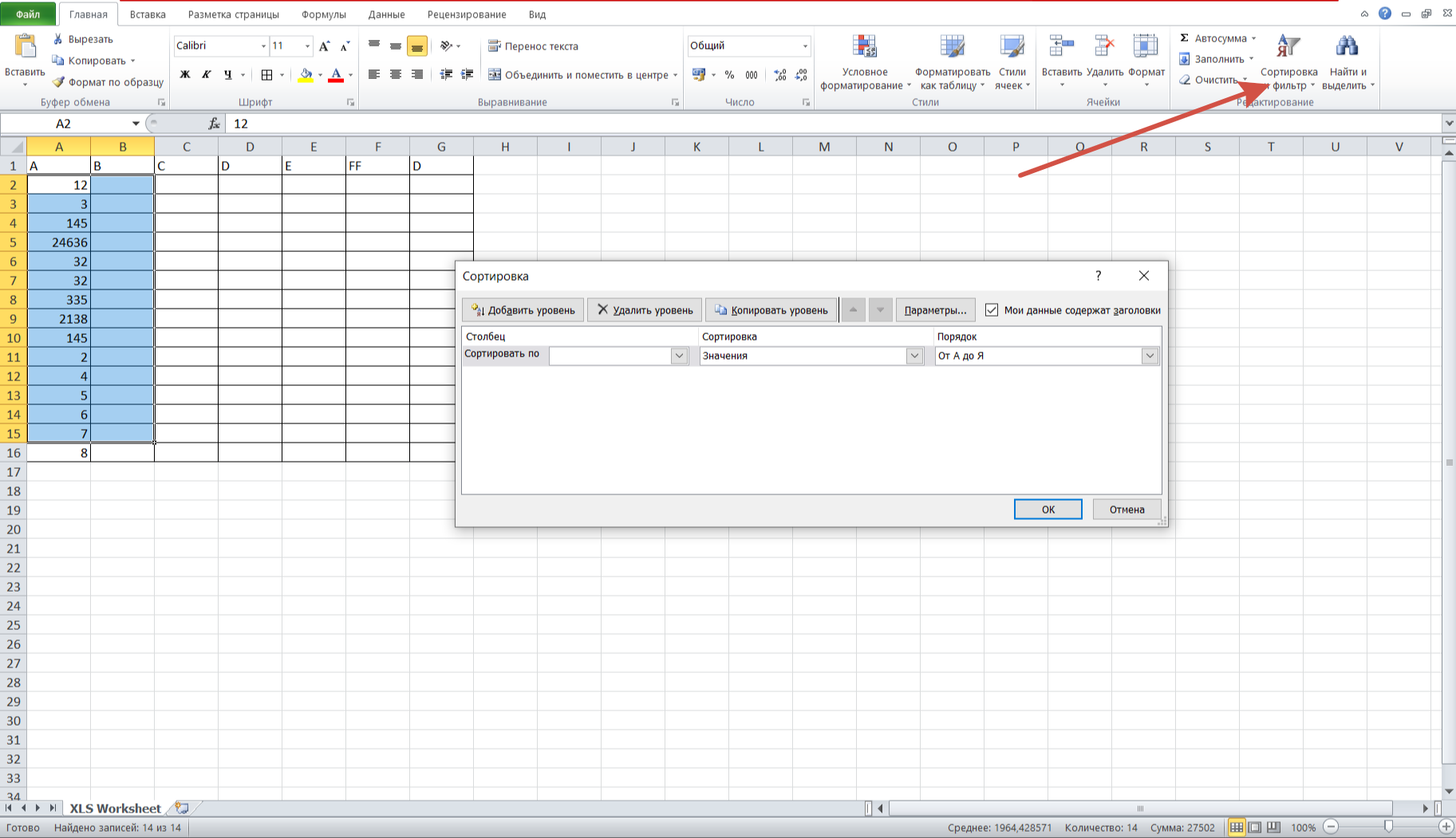 Заходим во вкладку «Главная», выбираем пункт «Сортировка и фильтр». Далее нажимаем на «Настраиваемая сортировка». В появившемся окошке настраиваем необходимые параметры и щелкаем по кнопке «ОК».