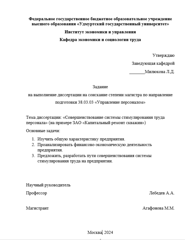 Далее в статье предлагаем ознакомиться с образцом задания к диссертации. В каждом учебном заведении могут быть установлены свои требования к оформлению.