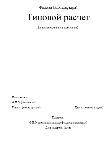Оформление типового расчета, в зависимости от его назначения и требований, имеет особенности. Ниже приведены общие требования, которые часто применяются к подобным документам: