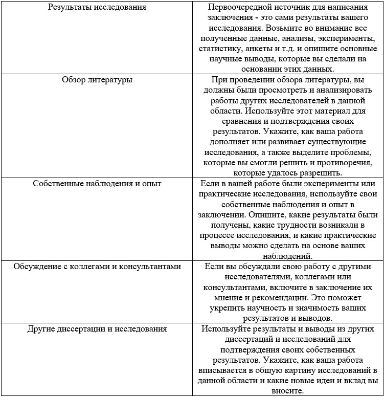 Для написания заключения диссертации можно использовать следующие источники и материалы: