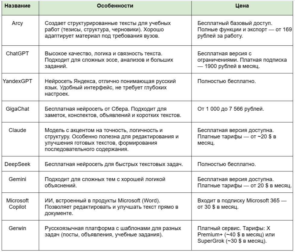 Также будут рассмотрены актуальные нейросети для студенческих работ: их возможности, ограничения и ключевые особенности.