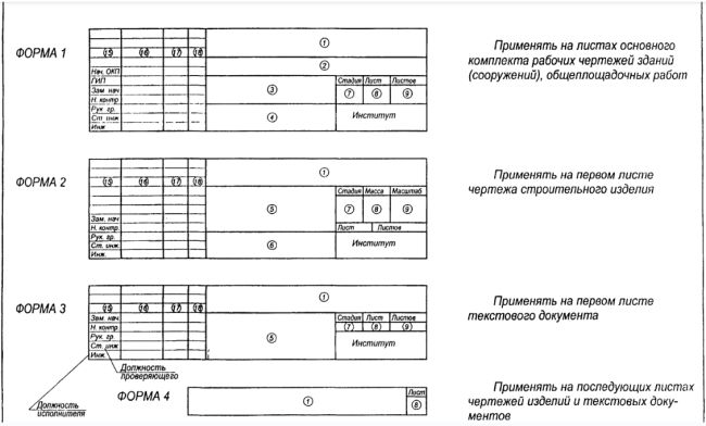 Оформление чертежей по ГОСТ требует заполнения основной надписи согласно ГОСТ 2.104-2006. Основная надпись располагается внизу листа. Графы отделяются жирными линиями, строки — тонкими.