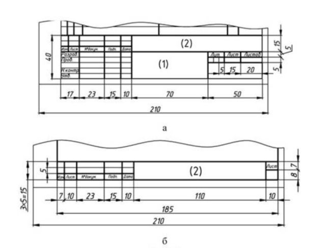 ГОСТ предусматривает несколько видов основной надписи. Их выбор зависит от порядкового номера листа в подшивке чертежей. Для первого листа используется рамка формы 1 (см. выше), для последующих — форма 2 и 2а (уменьшенная высота).