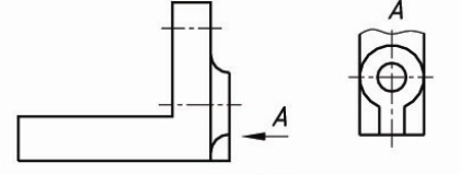 На чертеже, который обозначен номером 2, основная проекция объекта обозначается буквой «А». В свою очередь, стрелка с соответствующей буквой указывает направление взгляда и связана с этим изображением объекта.