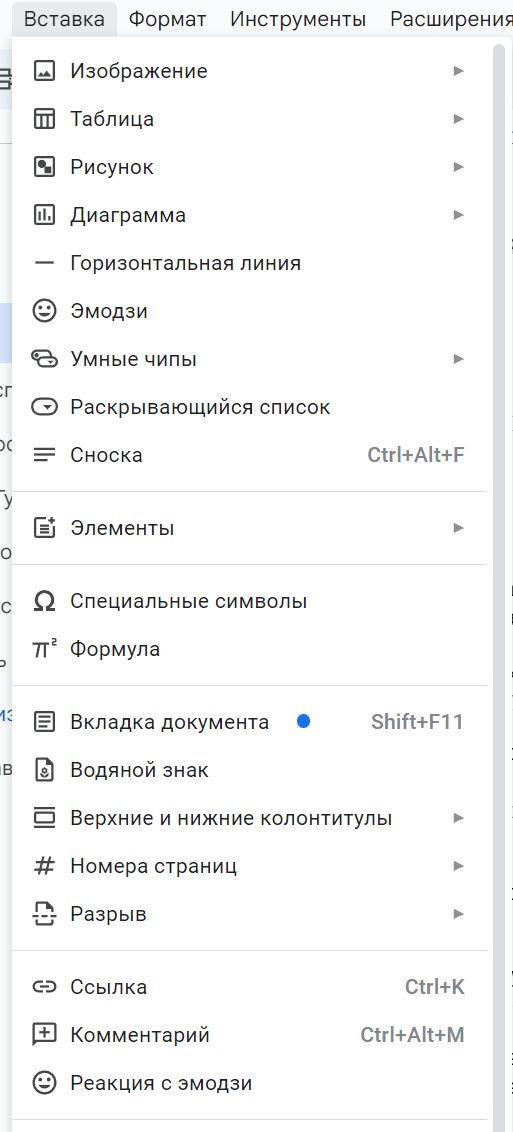 Если в документе используются заголовки, вы можете автоматически создать оглавление, которое будет отражать структуру документа. Для этого перейдите в меню «Вставка» и выберите пункт «Оглавление».