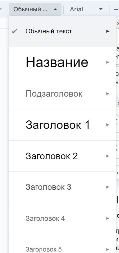 Заголовки служат для логической разбивки текста на разделы. Выделите текст и выберите в панели инструментов стиль «Заголовок 1», «Заголовок 2» и т. д. Заголовки более высокого уровня (например, «Заголовок 1») обычно применяются к разделам, а подзаголовки более низкого уровня (например, «Заголовок 2») — к подразделам.