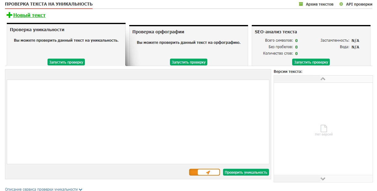 Здесь доступно два режима проверки: без регистрации (до 3000 символов) и после регистрации (до 5000 символов).