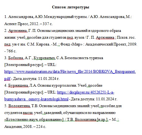 Необходимо перечислить в алфавитном порядке все использованные источники информации, включая интернет-ресурсы. В описании должны присутствовать: инициалы авторов, название книг, год издания, название издательства. К интернет-источникам прикрепляются ссылки и указывается дата посещения сайта.